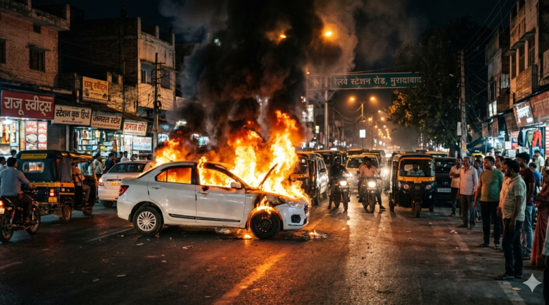 Read Moreमुरादाबाद में बड़ा हादसा: बीच सड़क धूं-धूं कर जली कार मुरादाबाद। उत्तर प्रदेश के मुरादाबाद जिले से एक सनसनीखेज मामला